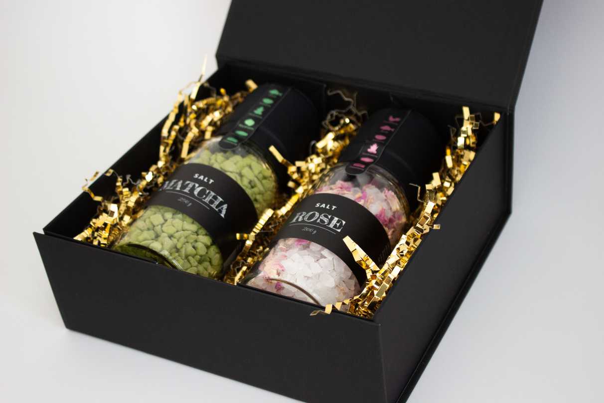 Jūros druskos ir rūkytų juodųjų pipirų žirneliais rinkinys
