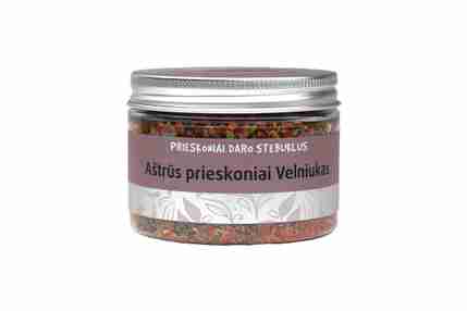 Žalioji paprika, raudonoji saldi paprika, aitrioji paprika 20%, juodieji pipirai, kvapieji pipirai.