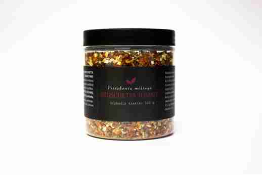 džiovinti pomidorai 56,4 % , česnakai, SALIERAI, raudona saldžioji paprika, raudonėlis, bazilikas.