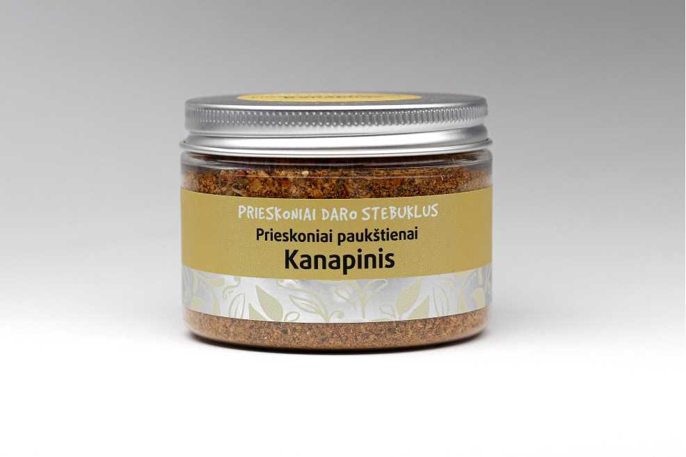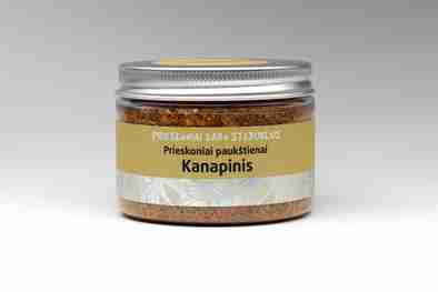 Česnakai, kanapių sėklų nuriebinti miltai, kanapių sėklos 10 %, svogūnai, tapijokų krakmolas, mielių ekstraktas, cukrus, raudona saldžioji paprika, aitrioji paprika, kalendra, paprikos ekstraktas, gelsvė, kuminas.