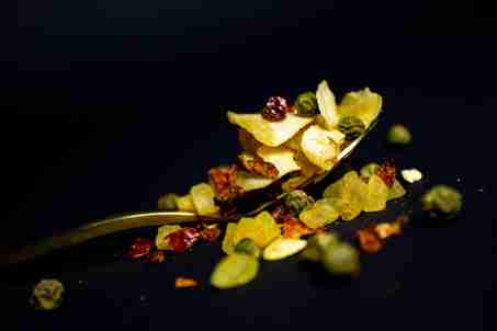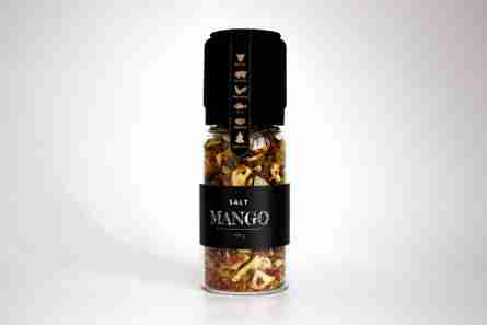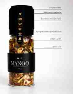 jūros druska 62 %, pomidorai, česnakai, žalieji pipirai, mango milteliai 4 %, aitrioji paprika, sičuano pipirai, cukranendrių cukrus, apelsinų žievelės, ypač tyras alyvuogių aliejus, rūgštingumą reguliuojanti medžiaga citrinų rūgštis, liofilizuoti krapai, imbierai, ciberžolė.