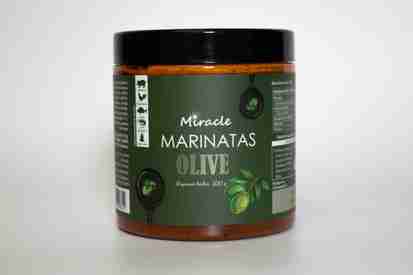 Augaliniai aliejai (rapsų aliejus, rapsų aliejus (visiškai hidrintas)), mišinys (raudona saldi paprika 36,6 %, svogūnai, česnakai, gelsvės šaknys, ožragė, kalendra, ciberžolė, imbieras, kuminas, pankolis, aitrioji paprika), druska, juodosios alyvuogės 12 %, mėlynžiedė ožragė, paprikos ekstraktas.