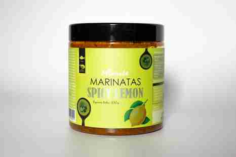 kuminas, lauro lapai), rūgštingumą reguliuojanti medžiaga citrinų rūgštis, mielių ekstraktas, paprikos ekstraktas, citrinų kvapioji medžiaga 0,1 %