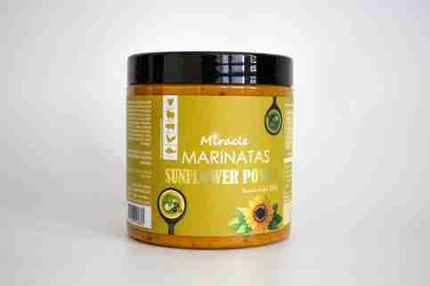 Augaliniai aliejai (rapsų aliejus, rapsų aliejus (visiškai hidrintas)), ryžių baltymai, saulėgrąžos 10 %, druska, mišinys (česnakai, krapų sėklos, aitrioji paprika, kmynų sėklos, mėlynžiedė ožragė, raudonėlis, GARSTYČIOS, raudona saldžioji paprika, krapai, bazilikas, kalendra, medetkų žiedai, svogūnai), rūkyta saldžioji paprika, ciberžolė, mielių ekstraktas.